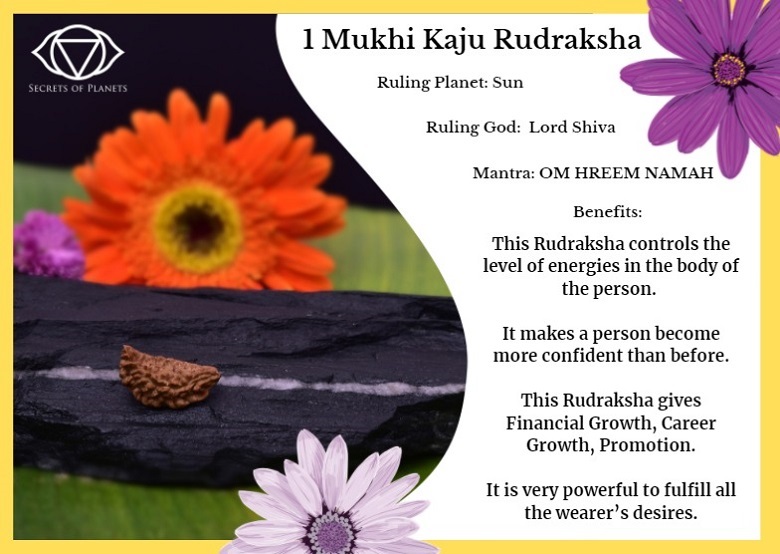 The One Mukhi Rudraksha reduces the malefic effects of the Sun from your chart hence it can be helpful to have a government job, for good relations with your father, for getting Visa or PR or Citizenship of any country and useful in any kind of job-works related to the Government.