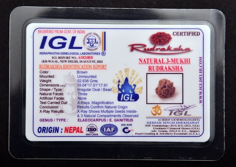 Since this Rudraksha represents Agni, it has the capacity to remove laziness and lethargy from the body and make you super active and energetic at all times. It keeps you warm. This bead can give you self confidence and remove the guilt feeling effectively. This Rudraksha is blessed to remove your sins of past and present life to make you feel lighter and better. All the past life karmas which are stopping you to succeed can also be released for non-stop progress in life. It is also associated with the trinity of supreme Gods Brahma, Vishnu and Mahesh.