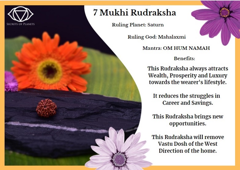 The Seven Mukhi Rudraksha reduces the malefic effects of Saturn. This will help you get rewards of your karmas. This can give you relief in muscular pain, arthritis and other ailments associated with bones and nerves. Professionals as well as businessmen must wear this Rudraksha. You can keep two beads of Seven Mukhi Rudraksha in the cash box to attract and stabilize wealth.