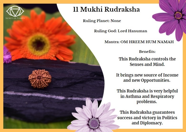 By wearing Eleven Mukhi Rudraksha you can boost strength, self-confidence and courage. This Rudraksha has the powers to reduce the malefic effects of Mars in your chart. The soul gets liberation from the cycle of birth and death once this bead is worn. To develop networking skills and get success in networking business, this Rudraksha can be a boon. You can have more management skills as well. It bestows supreme mental and physical strength along with complete protection in journeys.