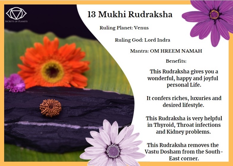 The Thirteen Mukhi Rudraksha has the powers of attractive personality so that you can attract people towards you for more success. You get favorable results in material and spiritual fulfilment. You can attract the relevant resources in life as per your desires. The Thirteen Mukhi has an alchemical and divine process which gives you complete happiness and satisfaction in your personal and professional life with lots of possessions.